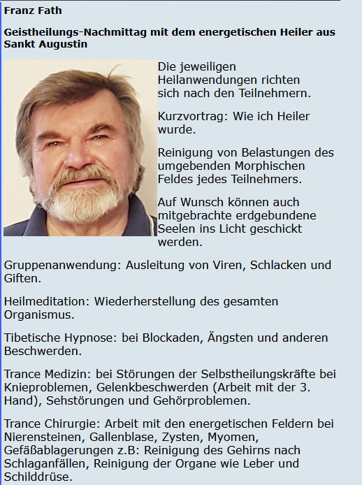 Geistheilungs-Nachmittag mit dem energetischen Heiler aus Sankt Augustin