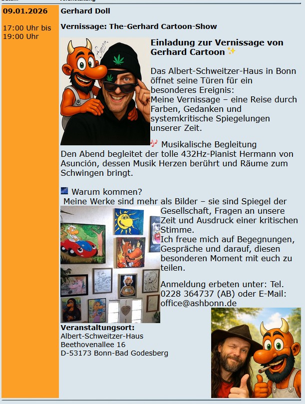 DIE VERNISSAGE FÄLLT LEIDER AUS!!! Vernissage: The-Gerhard Cartoon-Show